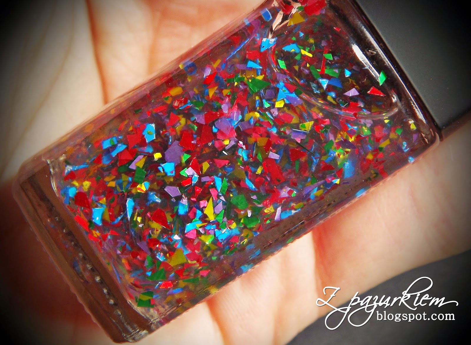 KOLOR: Mówiąc o kolorze, mówimy oczywiście o odcieniach drobin. A tu istny szał! :) Czerwień, róż, żółty, zielony, niebieski, fioletowy... Niezły cyrk ;)