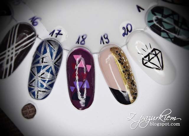 Po wzory geometryczne chętnie sięgają także moje klientki, choć muszę przyznać, że są to głównie młode kobiety :) Tu kilka propozycji hybrydowych :) Zauważcie, że triumfy święcą tzw. "szkiełka"...