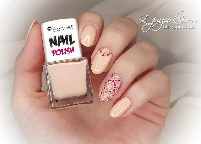 Pisząc, że post będzie w letnio-jesiennym stylu miałam na myśli zdobienie, do którego bazą był Peach sorbet. Zdecydowałam się na namalowanie delikatnych, prostych kwiatów, które ostatecznie wyglądały jak zasuszone ;) Całość wykonana lakierami z nowej kolekcji My Secret :)